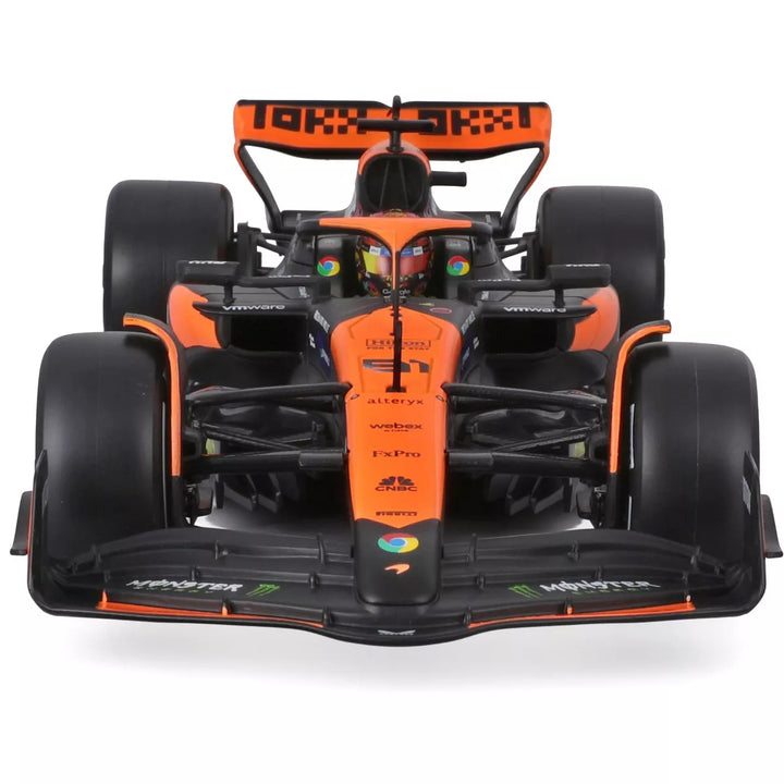 This 1:43 scale die-cast model captures the 2024 McLaren MCL38 as raced by both Norris and Piastri at the Miami Grand Prix. With sharp detailing, iconic team livery, and dual driver numbers (#4 & #81), it is an essential piece for collectors and McLaren fans alike—perfect for display or gifting.
