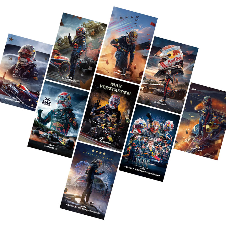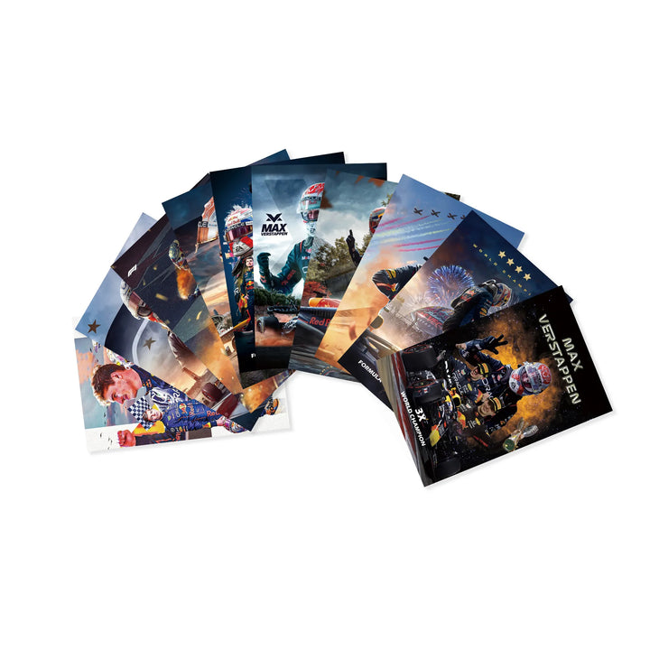 Whether displayed in a frame, used as collectibles, or shared as gifts, this postcard set is a true tribute to Verstappen’s dominance on the track.